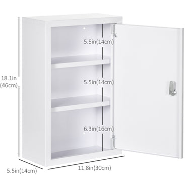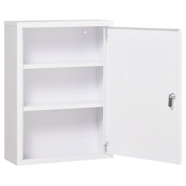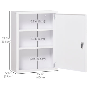 kleankin Lockable Medicine Cabinet, 3 Tier Steel Medical Wall Box with 2 Keys and Shelves for Bathroom, White