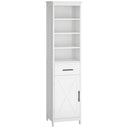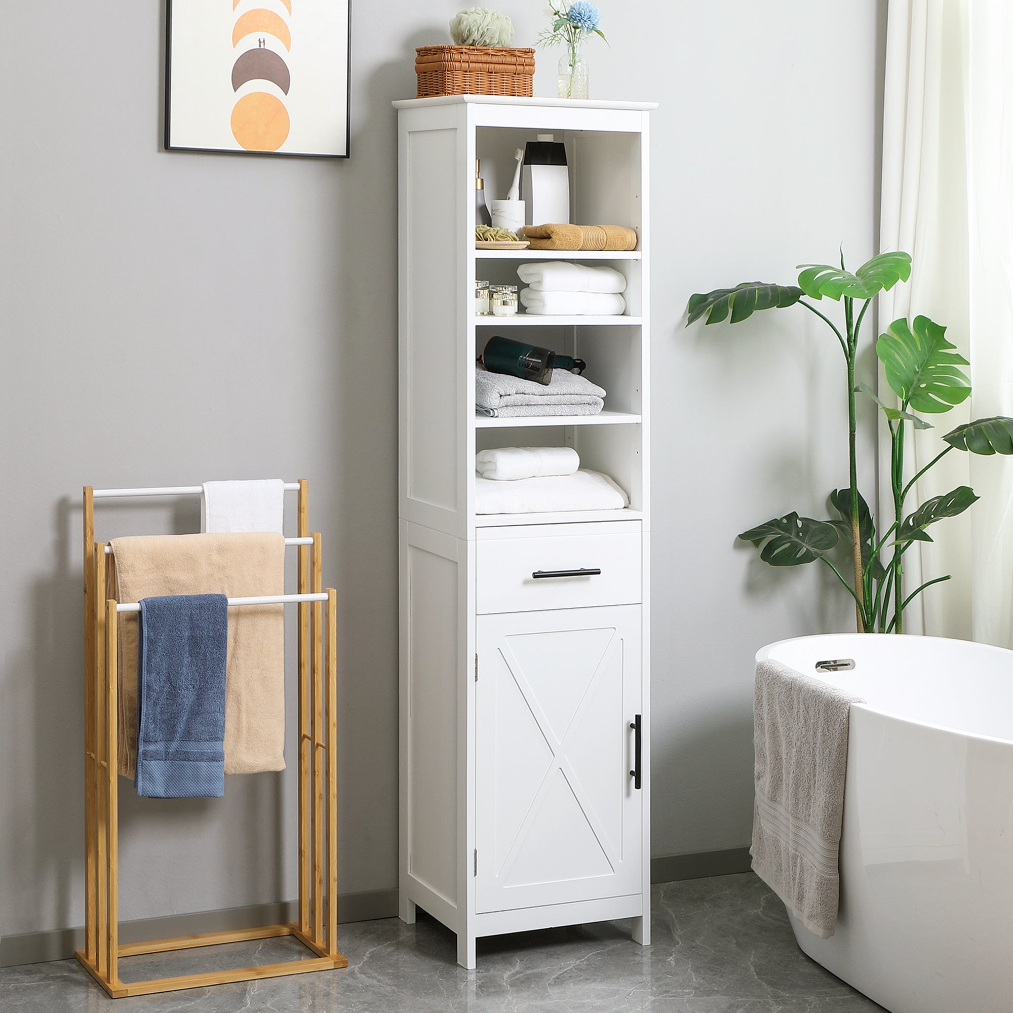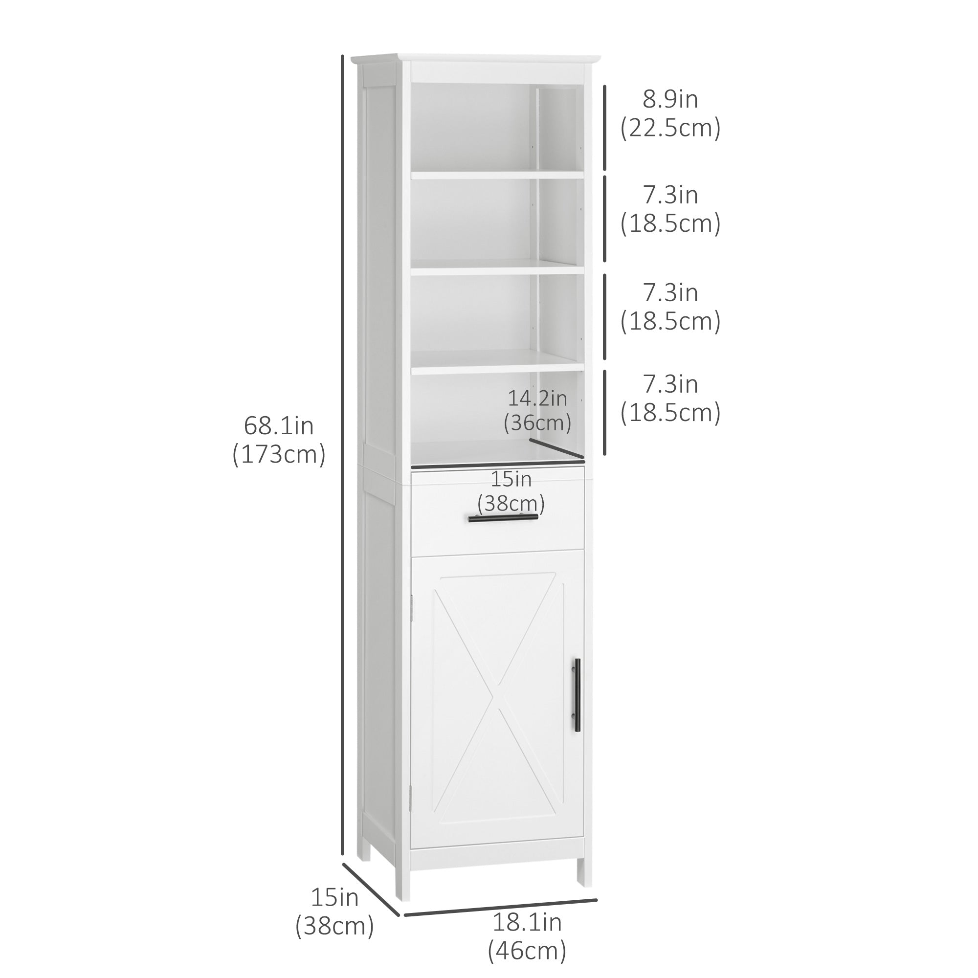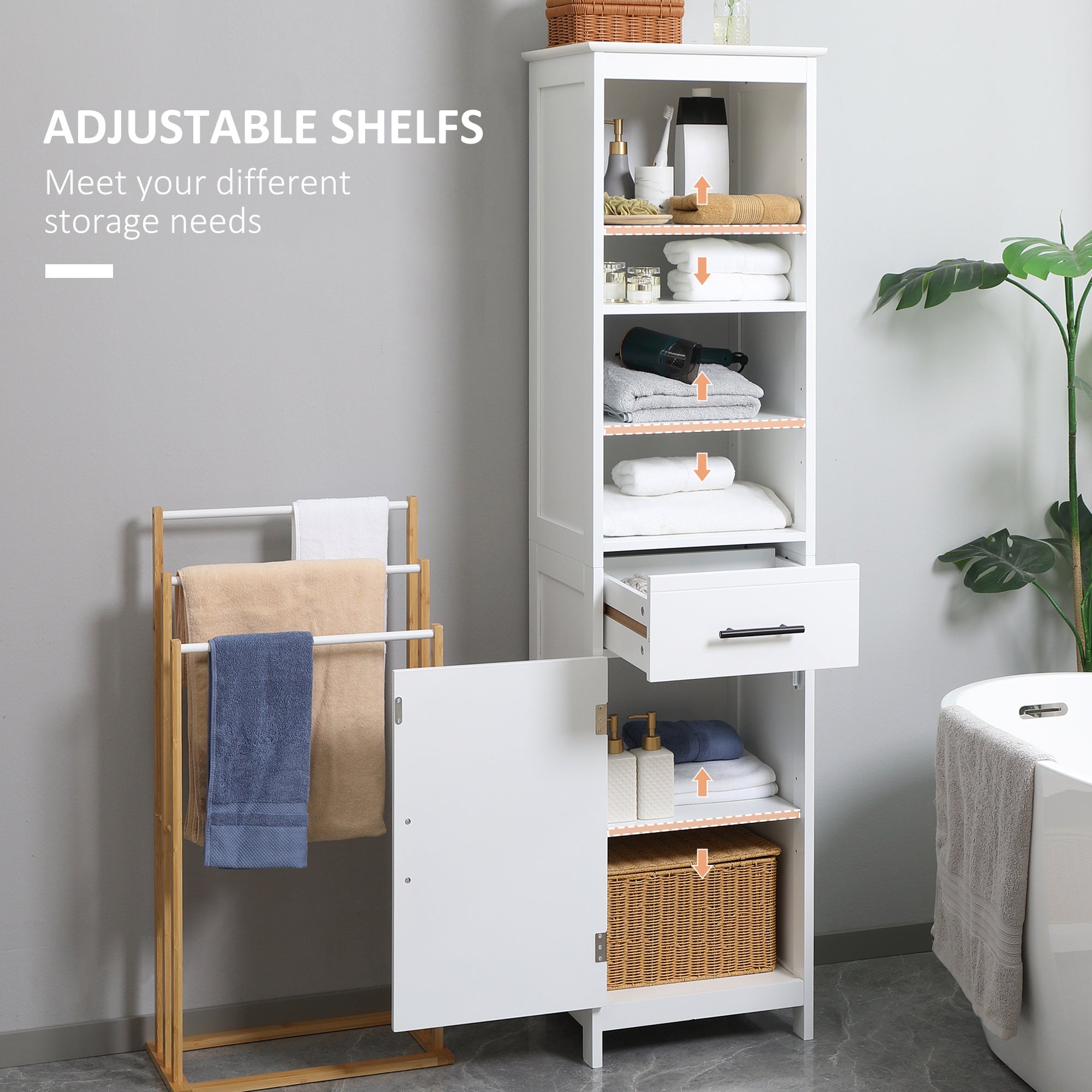 kleankin Tall Bathroom Storage Cabinet, Free Standing Bathroom Cabinet Slim Side Organizer w/ 3-Tier Open Shelf, Door, and Drawer, White