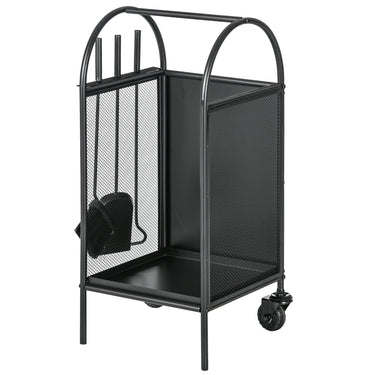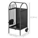 Outsunny 15" Outdoor Firewood Rack with Wheels and Tools, Heavy Duty Wood Storage Stacker, Indoor Outdoor Log Rack, Black
