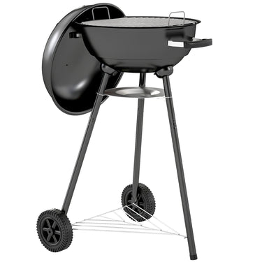 Outsunny 17" Kettle Charcoal BBQ Grill with BBQ Accessories, Barbecue Grill with Shelf, Ash Catcher, Wheels, Handles for Outdoor Cooking, Patio Backyard Party, Black