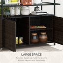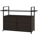 Outsunny 2-Tier PE Rattan Outdoor Bar Cart, Glass Top Outdoor Kitchen Island with Cabinet, Mixed Brown