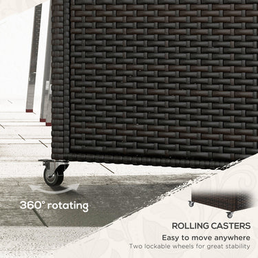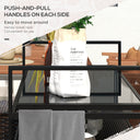 Take your entertaining to the next level with an outdoor bar cart by Outsunny. It has a tempered glass table, second layer and a cabinet on the bottom, giving you room to cart in entrees, drinks, and ordures. Lift the handle and roll it around; it's easy to go from the kitchen to your outdoor dining space, and the included brakes lock it in place. Use a handle as a towel rack and keep cleaning supplies in the cabinet. It endures spills and outdoor conditions. Get on a roll with Outsunny.