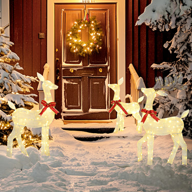 Tired of holiday decorations that can't withstand the winter? The disappointment of a display dimmed by snow and wind is real. This Outsunny lighted reindeer Christmas decoration set offers a heartwarming solution. The all-weather family of three glows with LED lights, creating a magical welcome. This enchanting Christmas deer scene ensures your yard shines brightly, bringing festive joy to your family year after year, no matter the weather.