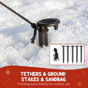 - • Includes ground stakes, tethers and sandbags to keep it securely anchored outdoors