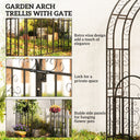 Outsunny 7.4ft Steel Garden Arch with Gate, Garden Arbor Trellis for Climbing Plants, Roses, Vines, Wedding Arch for Outdoor, Garden, Lawn, Backyard, Black