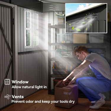 Discover the Outsunny Shed, a spacious and practical solution for organizing your outdoor space. Its generous interior provides ample room for tools and equipment, while natural light and ventilation enhance usability and comfort. The expansive, secure door ensures easy access, and the robust galvanized steel construction is built for lasting outdoor use.