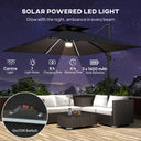 Light up the night with the Outsunny Patio Umbrella with Lights, featuring solar-powered LED lights and a 360° rotating canopy to keep you covered at any angle. Enjoy easy adjustments with a handy crank system and relish the breeze under a double vented, stable design. Suitable for any outdoor setting, this offset umbrella adds ambiance and comfort to your deck or garden.