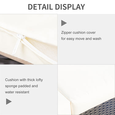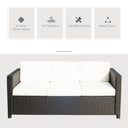 Outsunny Deluxe 3 Seat Rattan Wicker Sofa Garden Outdoor Patio Furniture with Cushion, Cream White