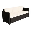 This high-quality and comfortable 3 seat rattan sofa is great for relaxing with friends and families while reading books or having a cup of coffee. It is built of solid steel pipe and robust PE rattan designed for long lasting indoor and outdoor use. It equipped with padded cushions for extra comfort. Washable cushion cover with No.5 zipper for easy opening and close. It is wide enough for 3 people to sit on, suitable for both indoor and outdoor use.