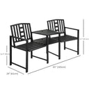 Get the most out of the warm weather with Outsunny. Our garden bench brings together two chairs and a small outdoor tea table in a single set. It's a great way to enjoy conversations and share snacks. With a hole in the middle of your table, you can add an umbrella to protect yourself from sunburns and rain. On the porch, patio, yard, or garden, our sleek and modern black bench makes your outdoor space even better. Get out, get comfortable, get Outsunny.