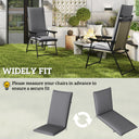 Brighten up your garden seating with Outsunny's Outdoor Chair Cushion. Crafted from 200 gsm yarn-dyed polyester with a UPF50+ coating, these patio chair cushions resist fading and water splashes, ensuring vibrant, comfy seating. Plus, the 25D high-resilience foam offers unmatched comfort. With handy fixing ties and an adjustable back band, these outdoor seat cushions fit a wide range of chairs. Enjoy a fresh look effortlessly!