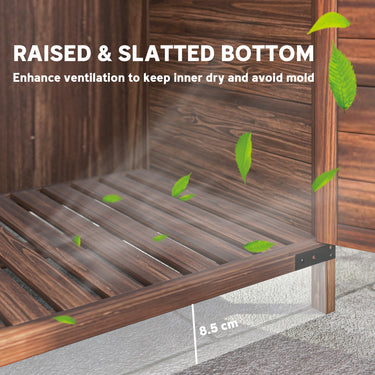 Outsunny Outdoor Storage Cabinet, Wooden Garden Storage Shed with Double Doors and Shelves for Garden Porch Deck, Mixed-Brown
