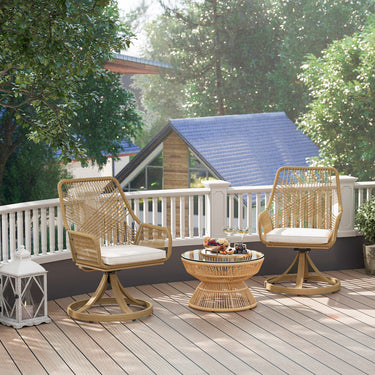 Outsunny Outdoor Swivel Dining Chairs Set of 2, Patio Rattan Chairs with Soft Cushions for Garden, Backyard, Poolside, Khaki