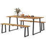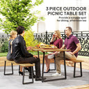 Transform your outdoor space with the Outsunny picnic table set, a charming addition for any patio set or deck furniture collection. This 3-piece patio furniture set comfortably seats six, featuring a robust steel and fir wood design with a unique trapezoidal frame for enhanced stability. Enjoy added convenience with adjustable foot pads and a 2" (5 cm) umbrella hole, suitable for sunny days or a cozy outdoor dining set experience.