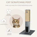 PawHut 31" Tall Cat Scratching Post for Indoor Cats with Hanging Balls, Grooming Brushes, Stable Base, Grey