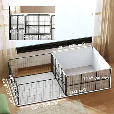PawHut 7 Panel Dog Whelping Box Convertible DIY Pet Playpen with Washable Pee Pads, 600D Oxford Fabric, 96" x 48" x 24"