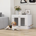 PawHut Dog Crate Furniture with 360° Rotatable Removable Dog Bowls, Two Doors, for Medium Dogs, 31.5" x 24" x 25", White