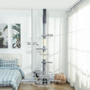 PawHut Floor to Ceiling Cat Tree, 4 Tiers Tall Kitty Climbing Tower with Scratching Post, Adjustable Height 87-100"