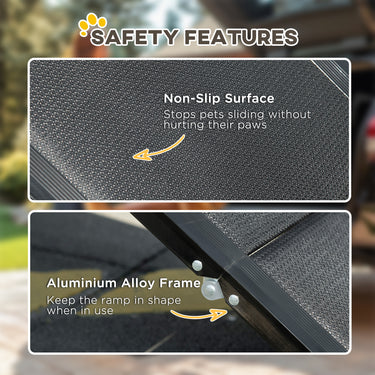 Taking dogs on car rides has never been easier, thanks to this PawHut car ramp for dogs – they'll get in and out of cars with ease. The MDF and aluminium alloy structure keeps it stable, whilst the non-slip surface ensure pets walk up and down safely. When finished, fold the ramp to save space – there's even a handle to carry with ease. Perfect for elderly pets or those with mobility issues, they can still get in and enjoy adventures in the car.