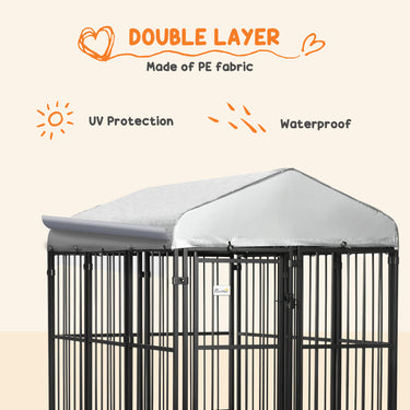 A PawHut outdoor dog run kennel helps burn off energy, makes pups comfortable, and offers plenty of space. Keep your pets cool, dry, and covered in a roofed surrounding that provides shade and rain protection. Prevent excited pups from jumping over with a high height and top coverage. Our outdoor dog pen has strong, bite-proof steel railings, offering the durability to outlast harsh outdoor use.