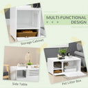 PawHut Hidden Cat Litter Box Furniture, Cat Litter Box Enclosure with Storage Compartments and Side Table Function, White