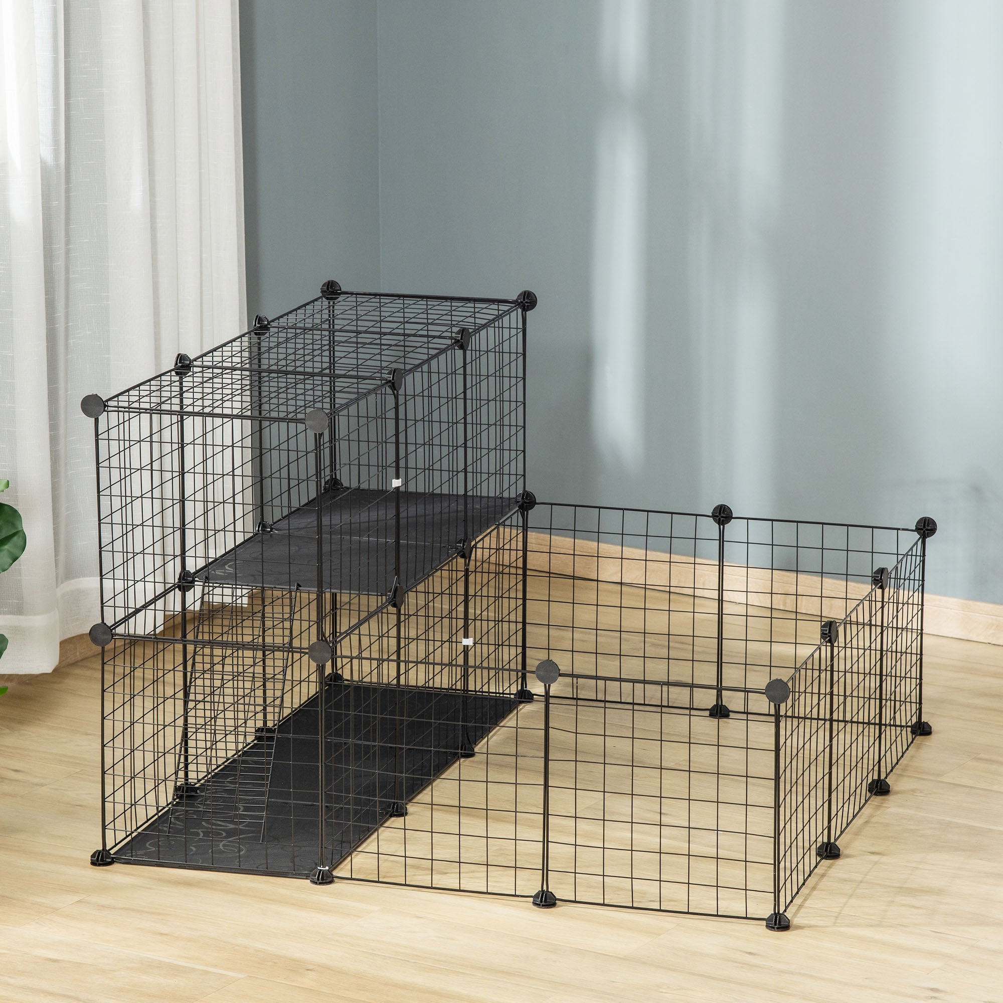 This playpen from PawHut is designed to build a fantastic home for you lovely pets. It provides a large space for small animals to have fun and it is easy to keep an eye on them. The multi-angle connectors make the playpen easy to set up and take down. You can build it into various configurations to adapt to your room's layout and change its shape as you want. Suitable for most small animals such as bunny, chinchilla, hedgehog, guinea pig, great for giving you peace of mind with your animals.