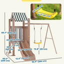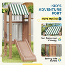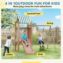 Qaba 4-in-1 Kids Swing Set for Playground with Slide, Covered Fort, Climbing Ladder, Ground Stakes, for Kids Ages 3-8, Brown