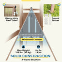 - • A-frame construction with 6 ground stakes enhances stability