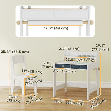 Qaba Kids Study Table and Chair Set, Art Desk and Chair Set with Storage Shelf and Drawers for 3-8 Year Old