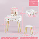 - • Dressing Table: 23.6" W x 11.8" D x 39.1" H (60 x 30 x 99.3 cm)