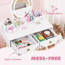 Tired of scattered hair clips and brushes making playtime chaotic? This daily mess can be frustrating. The Qaba girls' dressing table restores order with two drawers and movable bins. Its touch-activated LED mirror adds a magical glow, while the child-safe build with rounded edges brings peace of mind, letting your little one explore their creativity safely and independently.