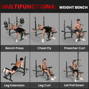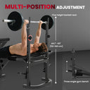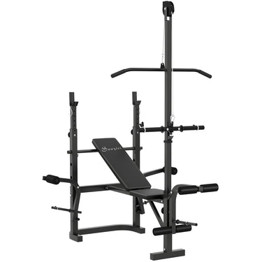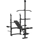 Transform your home workout routine with the Soozier multi gym machine! Featuring an adjustable weights bench that can be set to flat or incline positions and a versatile bench press rack, this all-in-one setup caters to a variety of exercises including leg extensions, leg curls, preacher curls and more. Elevate your fitness game comfortably and efficiently.