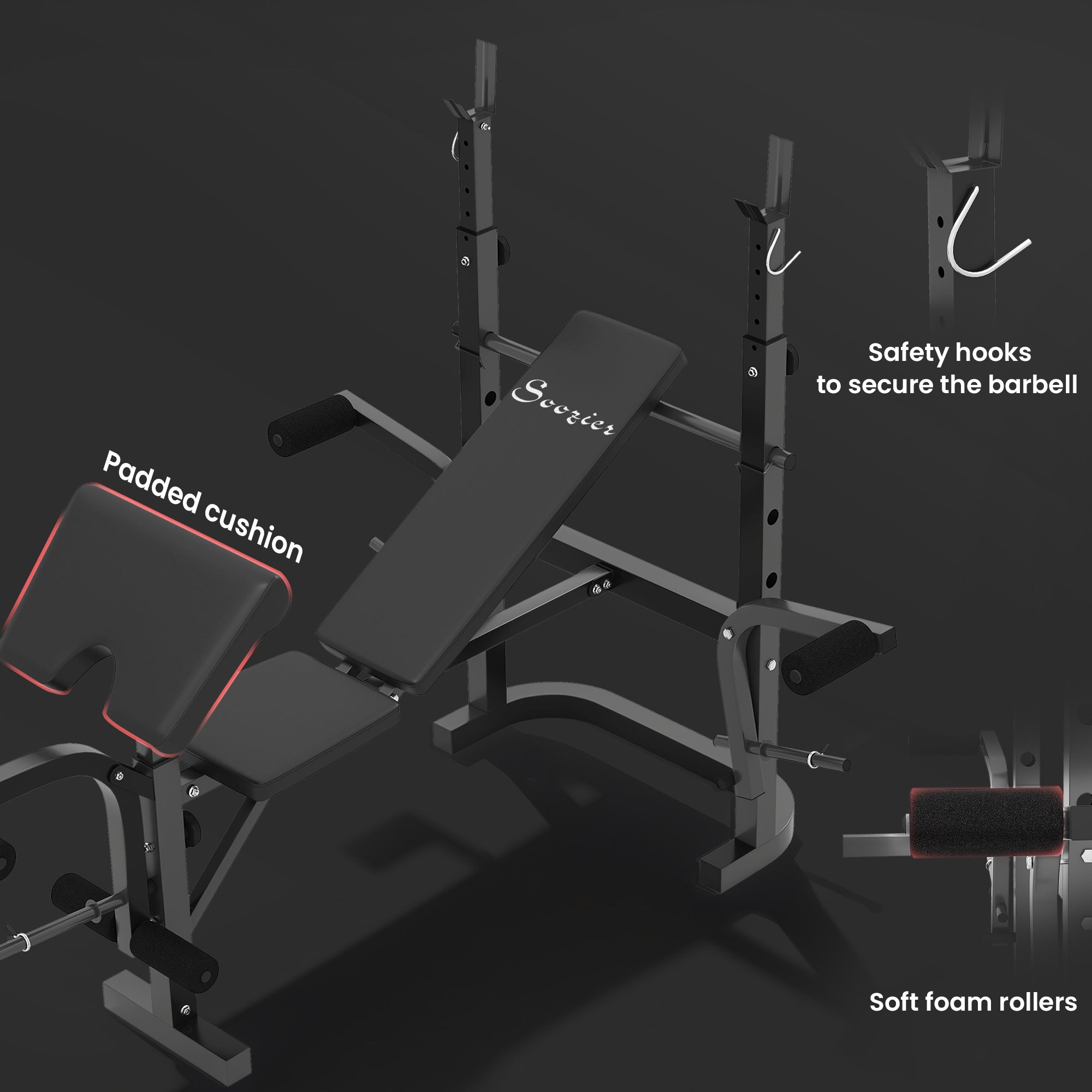 Soozier Adjustable Weight Bench with Bench Press Rack, Preacher Curl Bench, Leg Extension and Lat Pull Down