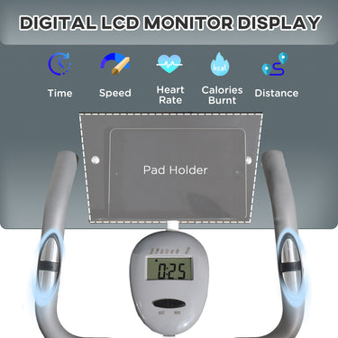 - • Multifunction LCD monitor screen: scan, duration, speed, distance, calories burned, heart rate
