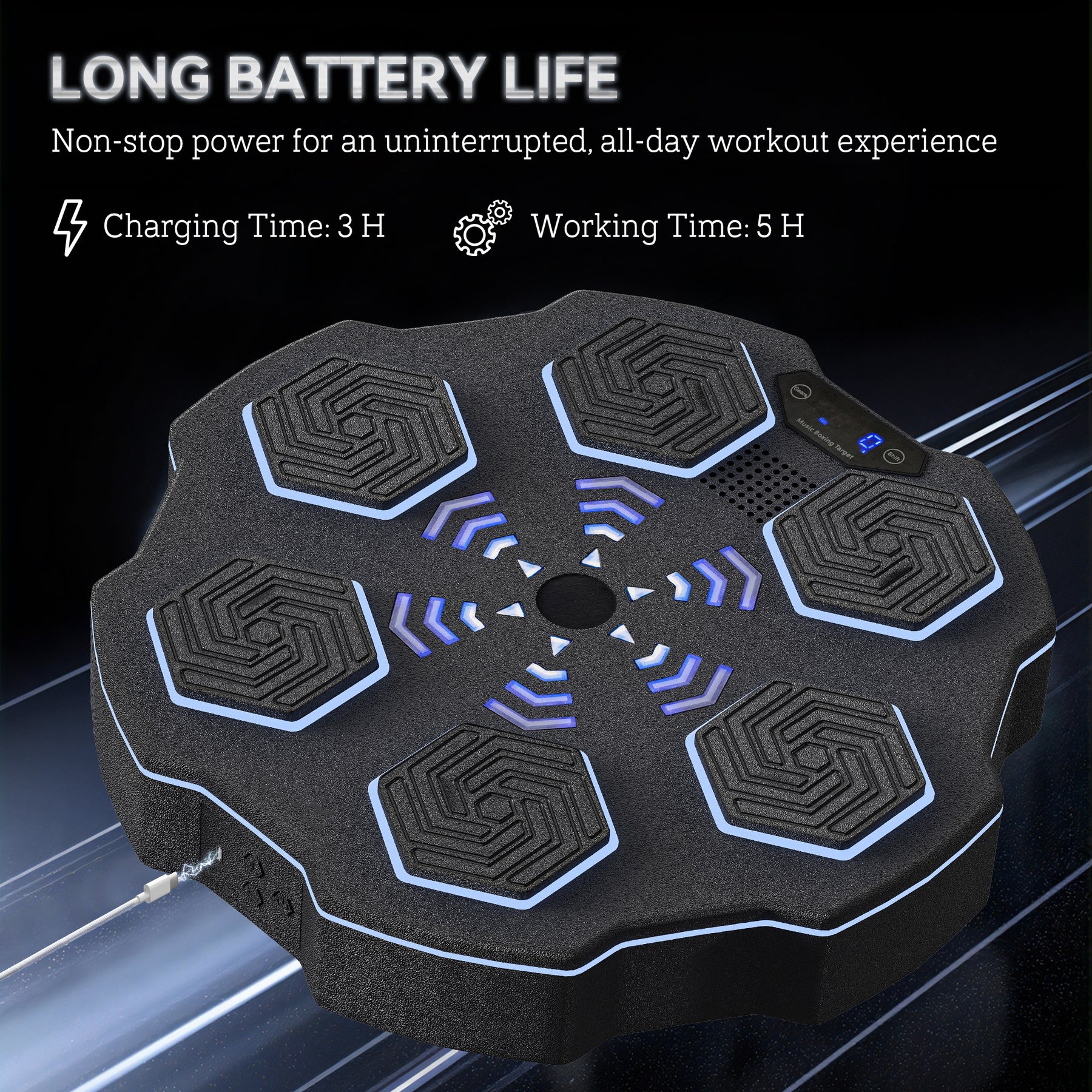 Unleash your inner champion with the Soozier music punching machine for adults! Customize your workout with 9 adjustable punching speeds (H01–H09) and the HAU mode that syncs with your favourite tunes, bringing the energy of a real boxing session straight to you. A quick 3-hour charge powers up to 5 hours of non-stop action. Complete your workout with the wall boxing punching pad, adding precision and focus to each strike. Punch your way to fitness, no matter your level!