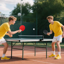 Experience the excellent blend of quality and comfort with the Soozier table tennis paddle set. Each paddle features reliable P2-grade plywood and 1.5 mm rubber for superior bounce and long-lasting performance. The ergonomic flared handles fit your hand perfectly, ensuring a non-slip grip during every fast rally. The portable Oxford fabric case with EVA padding keeps your paddles and balls protected from scratches, making it suitable for family fun, practice, or competitive play.