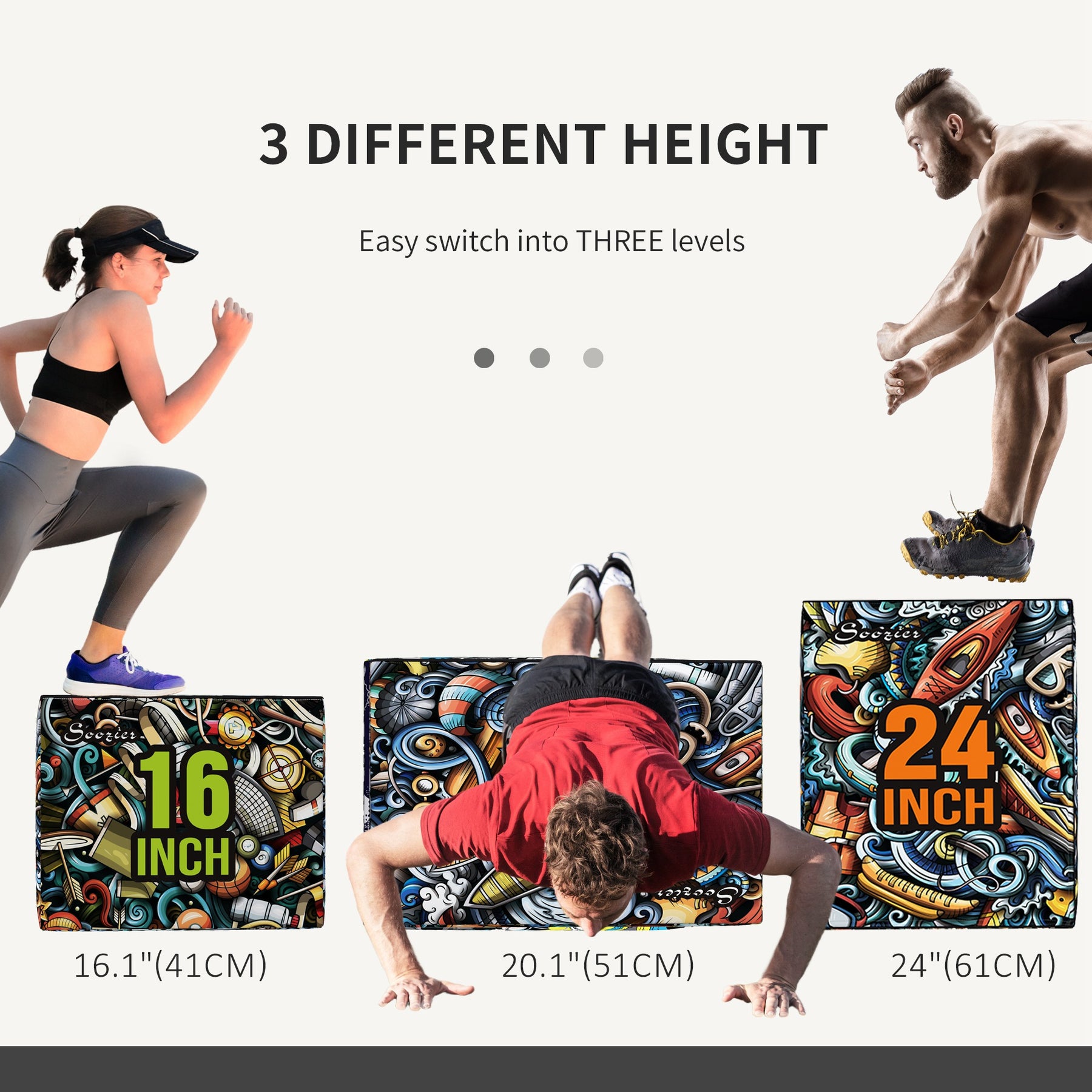 Working out at home or at the gym is now easier than ever - Whether you have a busy schedule or you're looking to add variation to your workouts. Soozier box jump gives you access to countless exercises for any fitness routine. Variable heights are great for all training skill levels and a wide range of conditioning exercises. Solid plyo box can handle up to 264 lbs (120 kg) of weight.